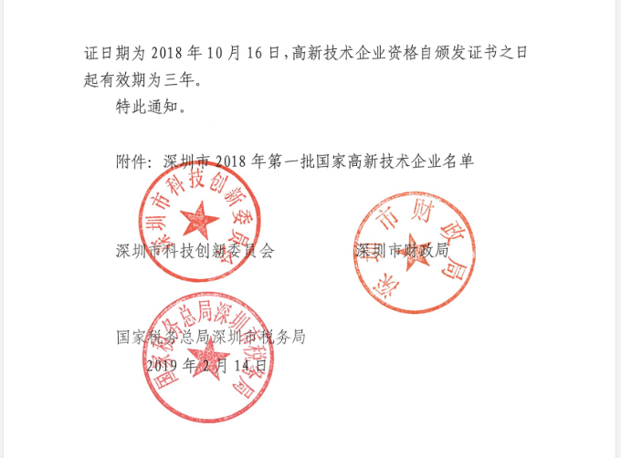 “国家级高新技术企业”是指在国家重点支持的高新技术领域,持续进行研究开发与技术成果转化,形成企业核心自主知识产权,并以此为基础开展经营活动,将重大高新技术成果转化成生产力的技术水平,属于国内领先或国际先进的企业。由国家科技部审核认定的“国家级高新技术企业”称号,是中国科技企业最高的荣誉之一,是对企业科研实力一个最权威的肯定。